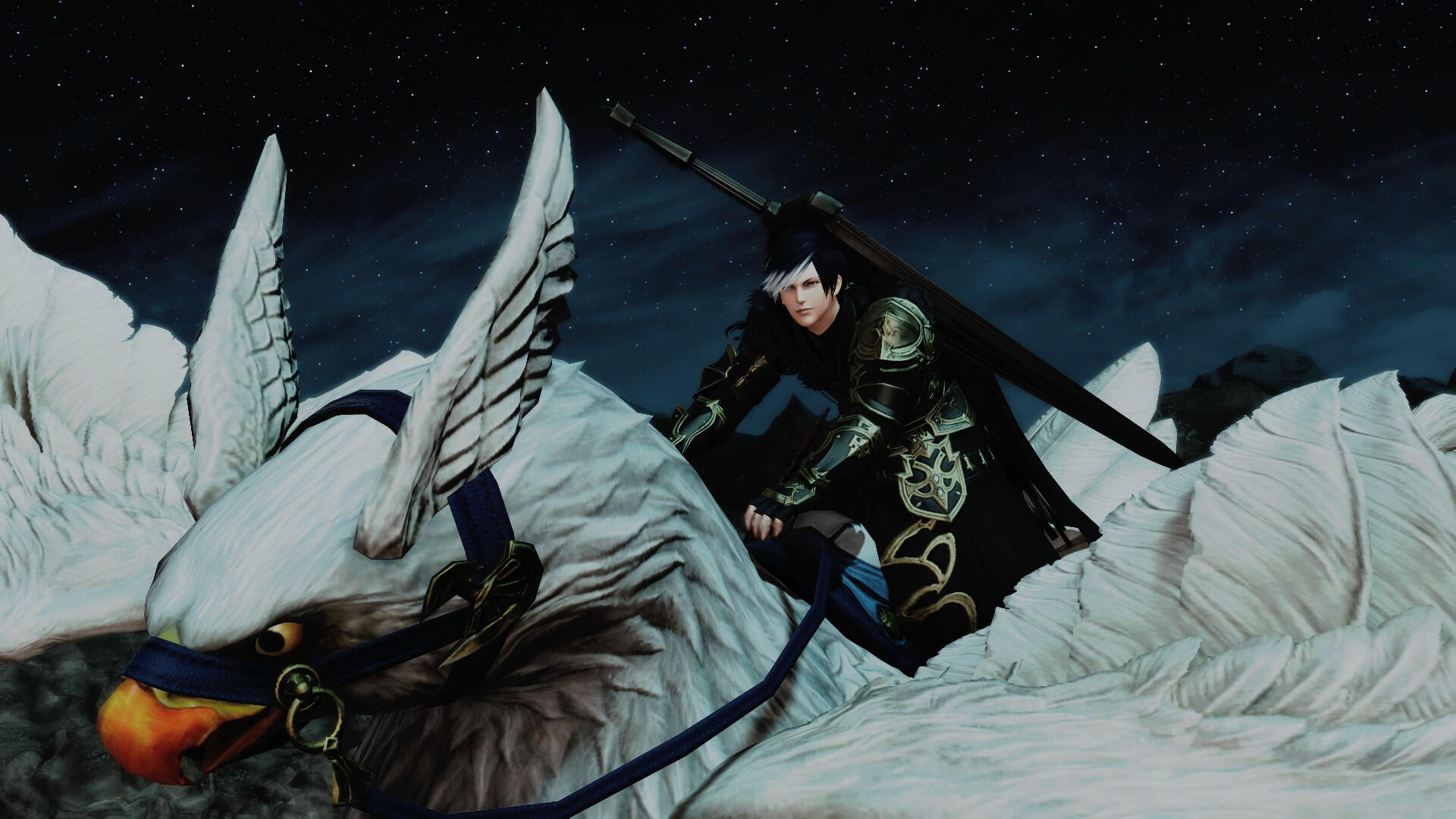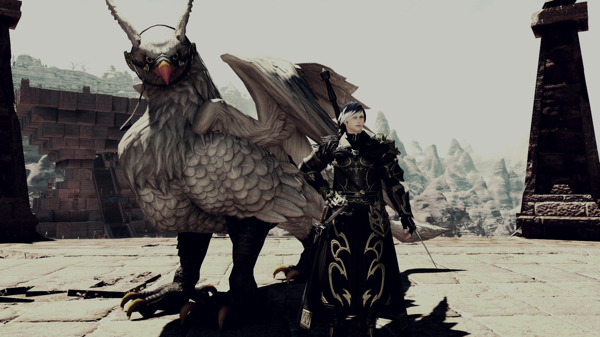 Few within the ranks of the Ala Mhigan Resistance would have the privilege nor the opportunity to ride a griffin. Even fewer get the chance to ride a True Griffin that dwelled in the highest parts of Gyr Abania across its peaks. Dante, one of the few individuals that not only tamed his own griffin, but a True Griffin at that. With its personality that is very similar to his when Dante made a pilgrimage through the mountain ranges to offer his respects to his ancestors. It was one such pilgrimage that where he encountered his newfound companion, and one that ever remained by his side for a long time. This True Griffin would eventually be known as Soren, the same name to his ancestor's trusted griffin companion, who's passed down to generations. Those who are lucky enough to look up at the skies would see the man flying with his companion through the Peaks of Gyr Abania, to bring peace and constant vigilance over the threats that would bring harm to his people.
